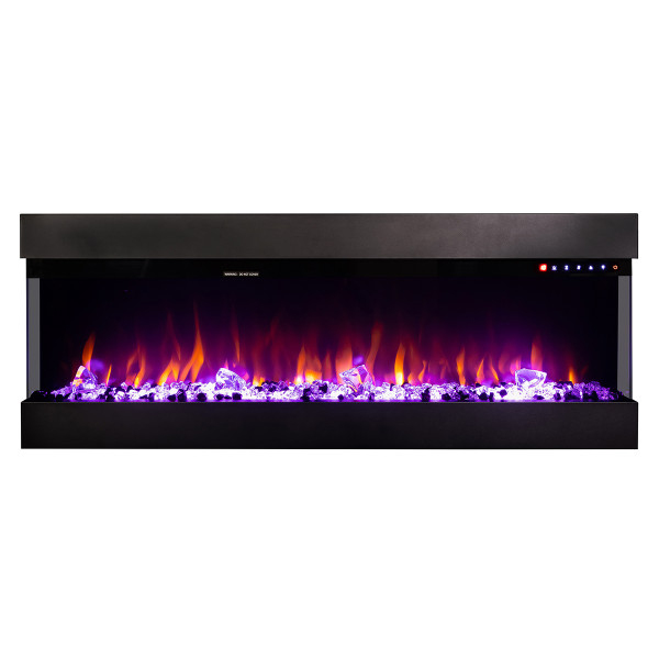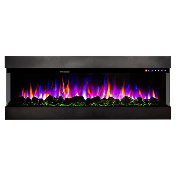 Начална страница Електрически камини Стенен 3D електрическа камина Dalas 72 за вграждане и стенен монтаж, Art Flame, 493×1828×200 мм, 1500 W, 30 цветови комбинации, Термостат, дърва и кристали