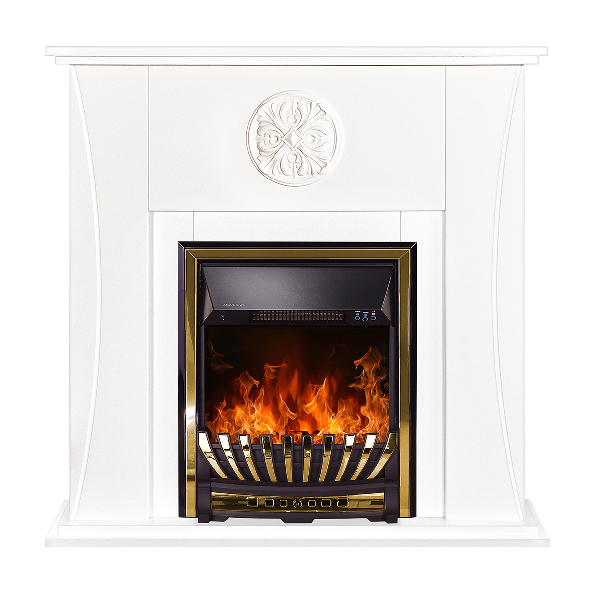 Electric fireplace "Meridian" is made in a dark design with a gold fence and frames. The device is capable of operating in 2 modes: in decorative mode and heating mode. In decorative mode, the device creates a cozy atmosphere with a high-quality simulated flame, the brightness of which can be changed using the remote control that comes with the kit. In heating mode, the electric fireplace is able to heat a room of 20m2. Overheating protection is responsible for the safety of the fireplace.