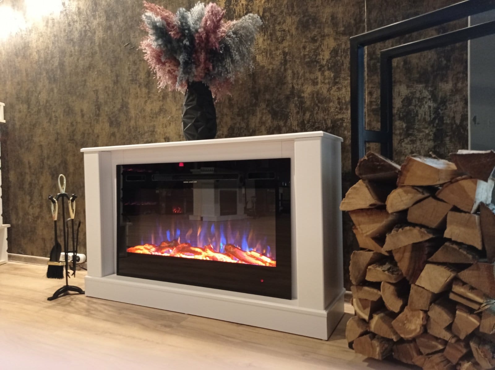 Начална страница Електрически камини с облицовка Стандарт Електрическа камина Bernard mini & Adeli, Art Flame, 725x1215x300 мм, 1500W, 3 цвята пламък, 5 нива на интензивност на пламъка, Дърва и кристали