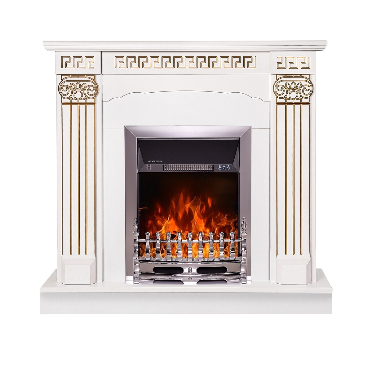 Calisto & Galileo silver electric fireplace will be a wonderful decoration for your home. The Calisto portal is made in classic style, with elegant lines with golden patina. The flames of the Galileo silver electric fireplace, with high quality imitation, will give your home a comfortable atmosphere. The functionality of this model allows you to use the flame separately from the heating mode, with the help of the remote control, also having the function of adjustable thermostat.