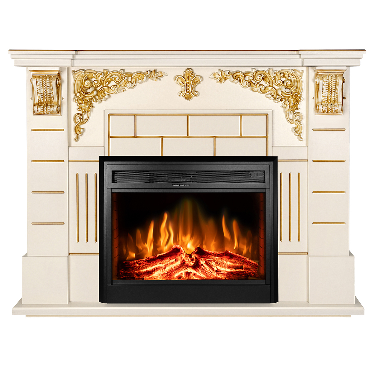 The electric fireplace is made in a standard form with a volumetric hearth and 3D fires. The functionality of the device consists of 2 modes: decorative mode and heating mode. In decorative mode, the electric fireplace creates the effect of a burning fire, the brightness of which can be adjusted using the remote control that comes with the kit. In heating mode, the device is capable of heating a room of 20 m2.