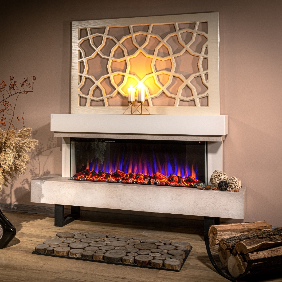 Начална страница Електрически камини с облицовка Премиум Електрическа камина Monro & Dalas, Art Flame, 750x1400x300 мм, 1500W, 30 цветови комбинации, Термостат, Дърва и кристали