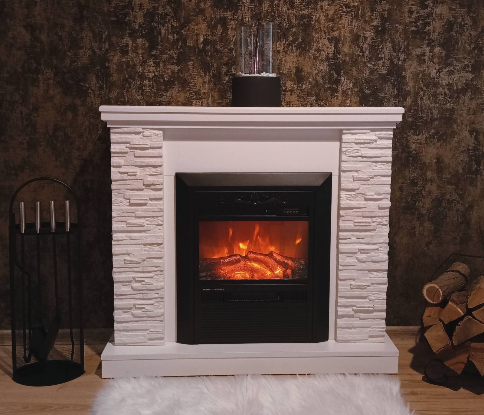 Due to the unique design, the Rock & Christina fireplace set will perfectly fit into a country house or apartment. Portal Rock perfectly combines classic and modern styles. Made in white and wenge with artificial stone on the columns. High-quality imitation of the flame of the electric fireplace Christina, will give a great feeling of comfort. The functionality of this model allows you to use the flame simulation mode separately from the heating mode, it has a remote control panel and an auto-off timer.