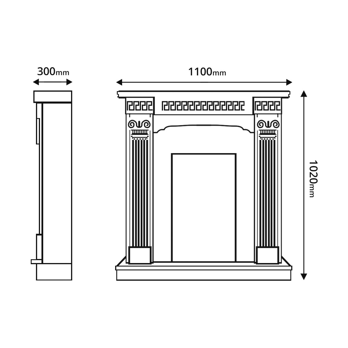 The Calisto & Corsica set will be a wonderful decoration for your home. The Calisto portal is made in a classic style with elegant golden patina lines. High quality imitation of the bright flame of Corsica will give your home a cosiness. The functionality of this model allows you to use the flame separately from the heating mode, with a remote control and with an automatic timer function.