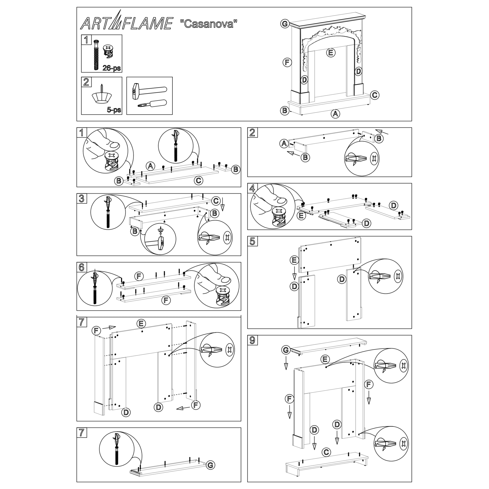 "Casanova & Galileo Silver" is a classic model of high quality fireplace sets from the European brand Art Flame.