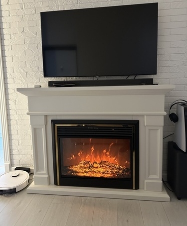Electric fireplace "Richie" is a device made in a dark design with thin gold inserts. In decorative mode, the electric fireplace creates a believable flame simulation not only with the help of visual decoration, but also due to the new sound simulation technology. In heating mode, the device is able to heat a room of 20m2. Overheating protection is responsible for the safety of the fireplace. And also included with the fireplace set is a remote control with which you can adjust the brightness of the flame, the sound level and switch heating modes.