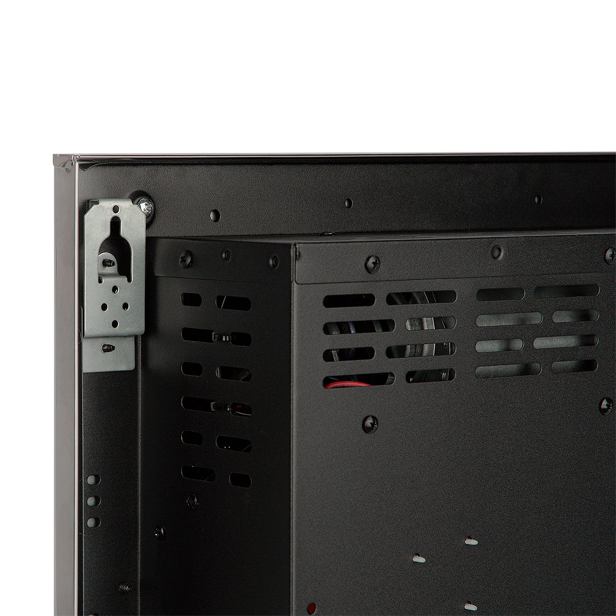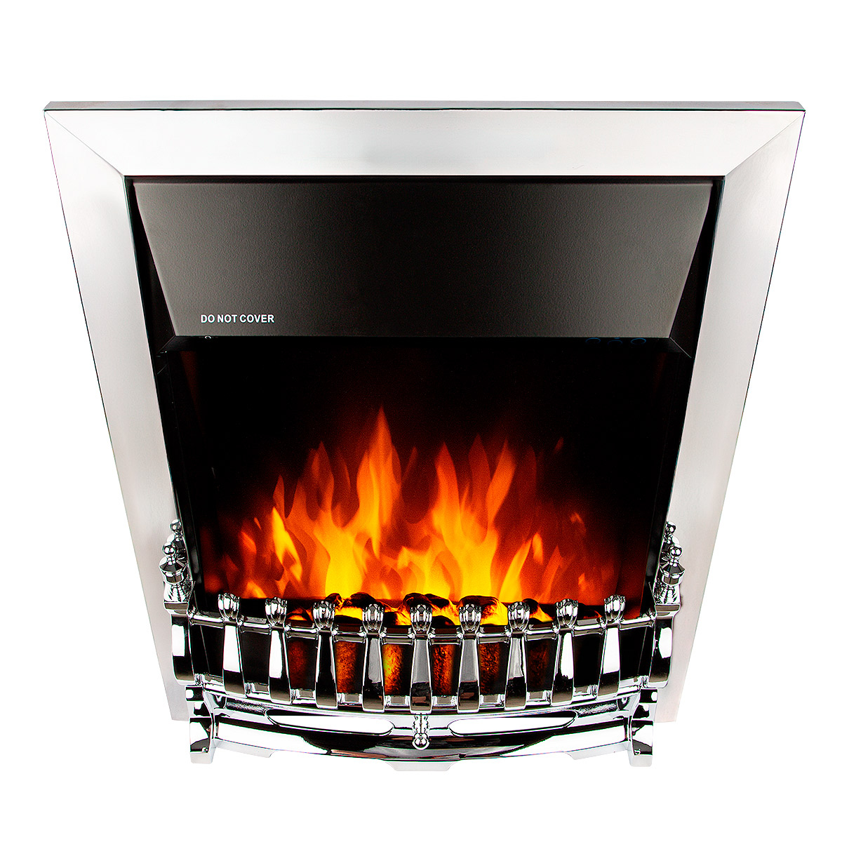 Modern Galileo silver electric fireplace with realistic flame effect, which can easily decorate your living room, bedroom or cafe. This model can be placed in the portal, embedded in the wall or in any other place, at the client's request, allowing a tolerance to the edges of 2 cm for ventilation. The functionality of the electric furnace allows it to operate in two modes: heating mode and decorative mode. The heat is distributed throughout the room, using a silent convector. This model is quite economical, its maximum power is only 2 KW. Another attractive option is the LED backlight. The Galileo silver electric fireplace will warm you in the cold winter and give you a romantic atmosphere on summer evenings.
