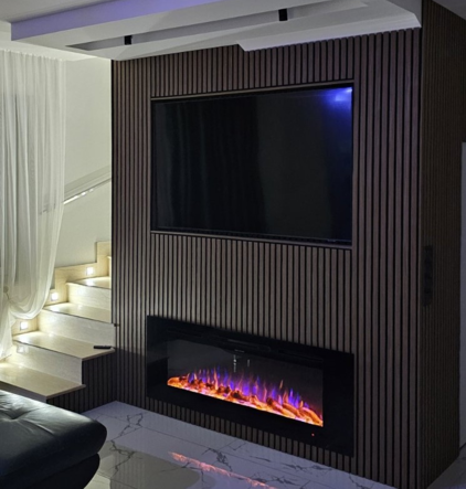 Homepage Electric Fireplaces Built-in Hefest recessed and wall mounted electric fireplace, Art Flame, 544x1524x140 mm, 1500W, 3 flame colors, 5 flame brightness levels, Logs and crystals