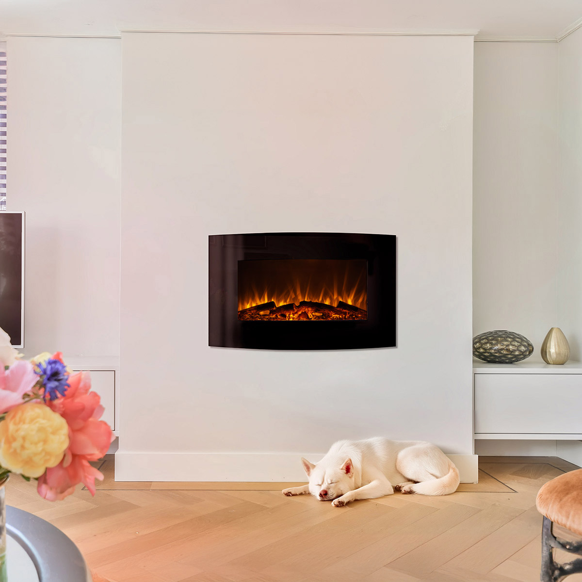 Santorini electric fireplace is modern, with a realistic flame effect, which will easily decorate the living room, bedroom or cafe. This model is easy to attach to the wall, without the need for special skills or additional fasteners, all you need is included. The functionality of the electric furnace allows it to operate in two modes: heating mode and decorative mode. The heat is distributed throughout the room using a silent convector. This model is quite economical, its maximum power is only 1.5 KW. Another attractive option is the LED backlight. The Santorini electric fireplace will warm you in the cold winter and will give you a romantic mood on summer evenings.